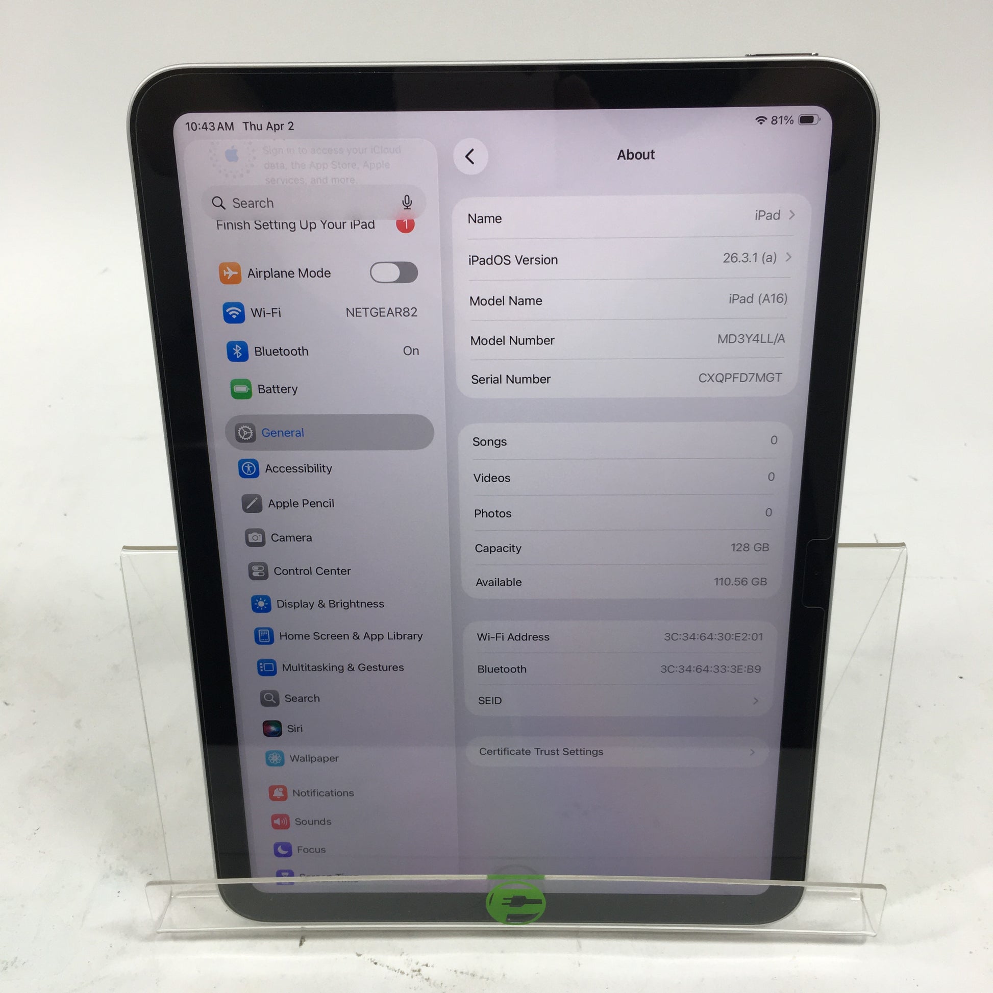 | Model | iPad 11" (A16) |